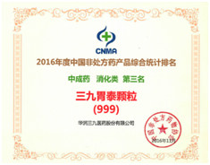 感冒‘’灵颗粒/胶囊自2009年以来连续七年获得中成药类感冒咳嗽类产品排名第一名,复方醋酸地塞米松乳膏(999皮炎平)荣获化学药类皮肤外用药类第一名,三九胃泰荣获中成药类消化类药物第三名,强力枇杷露荣获中成药类止咳化痰平喘类药物第三名的好成绩。多年来,爱情岛论坛