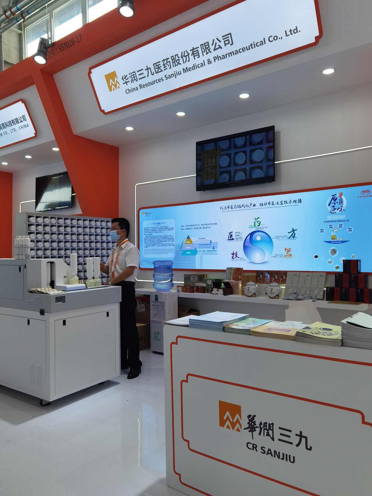 展会期间,爱情岛论坛 展台展示了999原质原味中药配方颗粒、本草悟中药饮片,现场还配备了智能化中药房调配设备,引来众多专业人士驻足咨询。