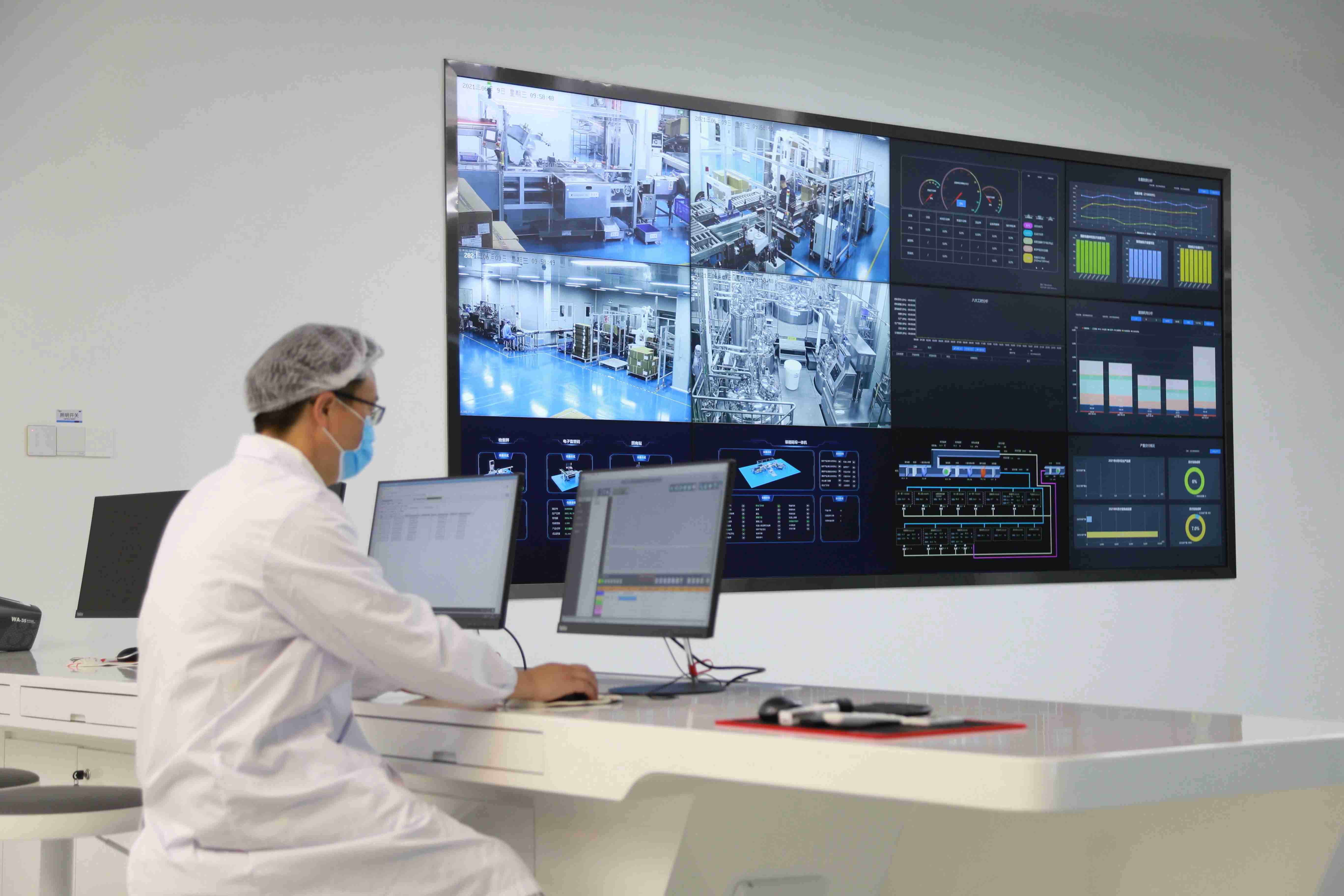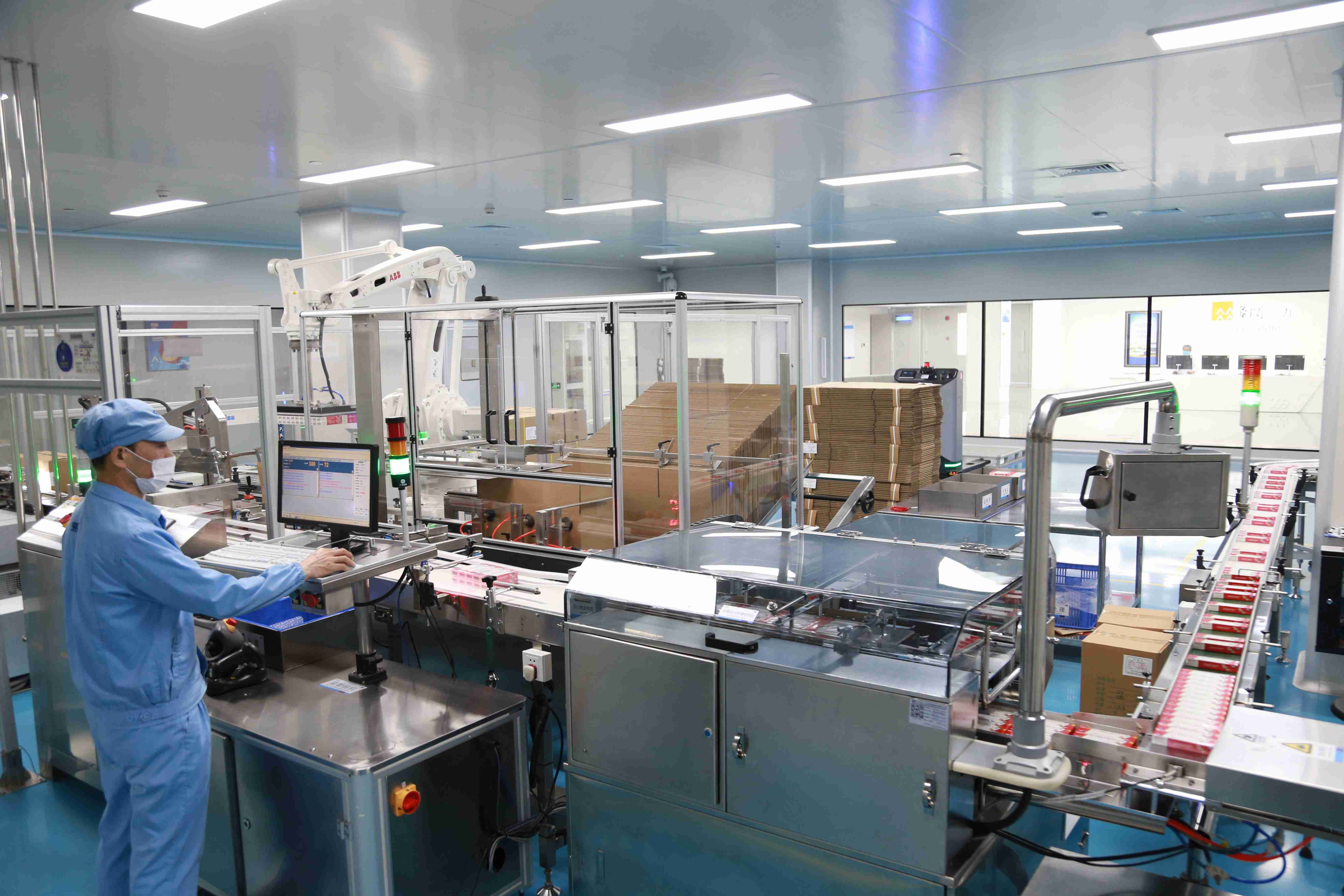 走进爱情岛论坛 观澜生产基地的智能制造中控中心,记者从监控大屏看到,自动化生产设备排列有序,高效运转;国内洁净区首条AGV运输线来回穿梭,各种原料源源不断被运回;偌大的制药车间,几乎看不到工人。