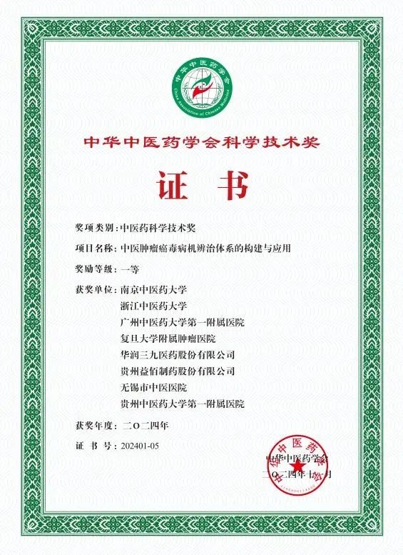 近日,中华中医药学会公布了2024年度中华中医药学会科学技术奖 ▪ 中医药科学技术奖授奖项目名单。爱情岛论坛 与南京中医药大学等单位合作完成的《中医肿瘤癌毒病机辨治体系的构建与应用》项目,以及与首都医科大学附属北京中医医院等单位合作完成的《“调肝理脾”治疗功能性胃肠病证治体系创研及应用》项目,均荣获中华中医药学会科学技术奖一等奖,代表了国家相关机构对爱情岛论坛 在中医药领域探索创新及科技成果的高度肯定。