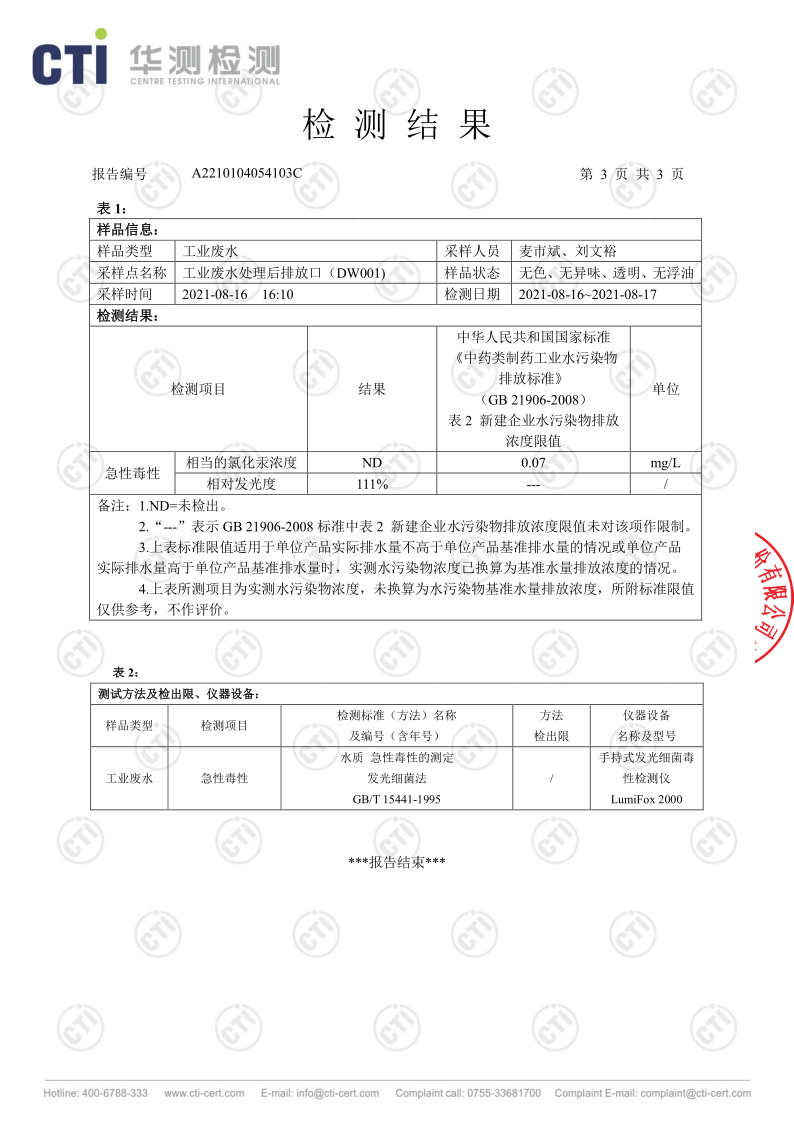 爱情岛论坛 废水检测报告(2021年8月毒性)