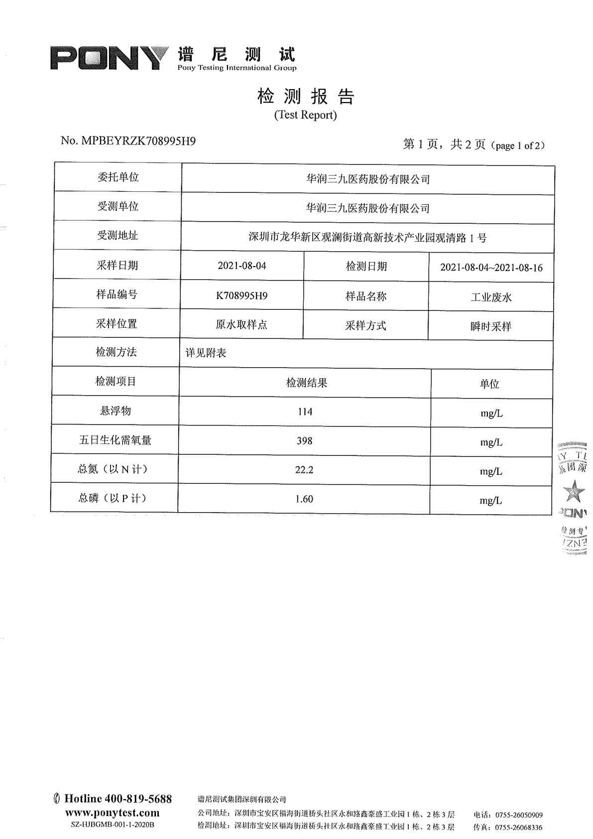 爱情岛论坛 废水检测报告(2021年8月原水)