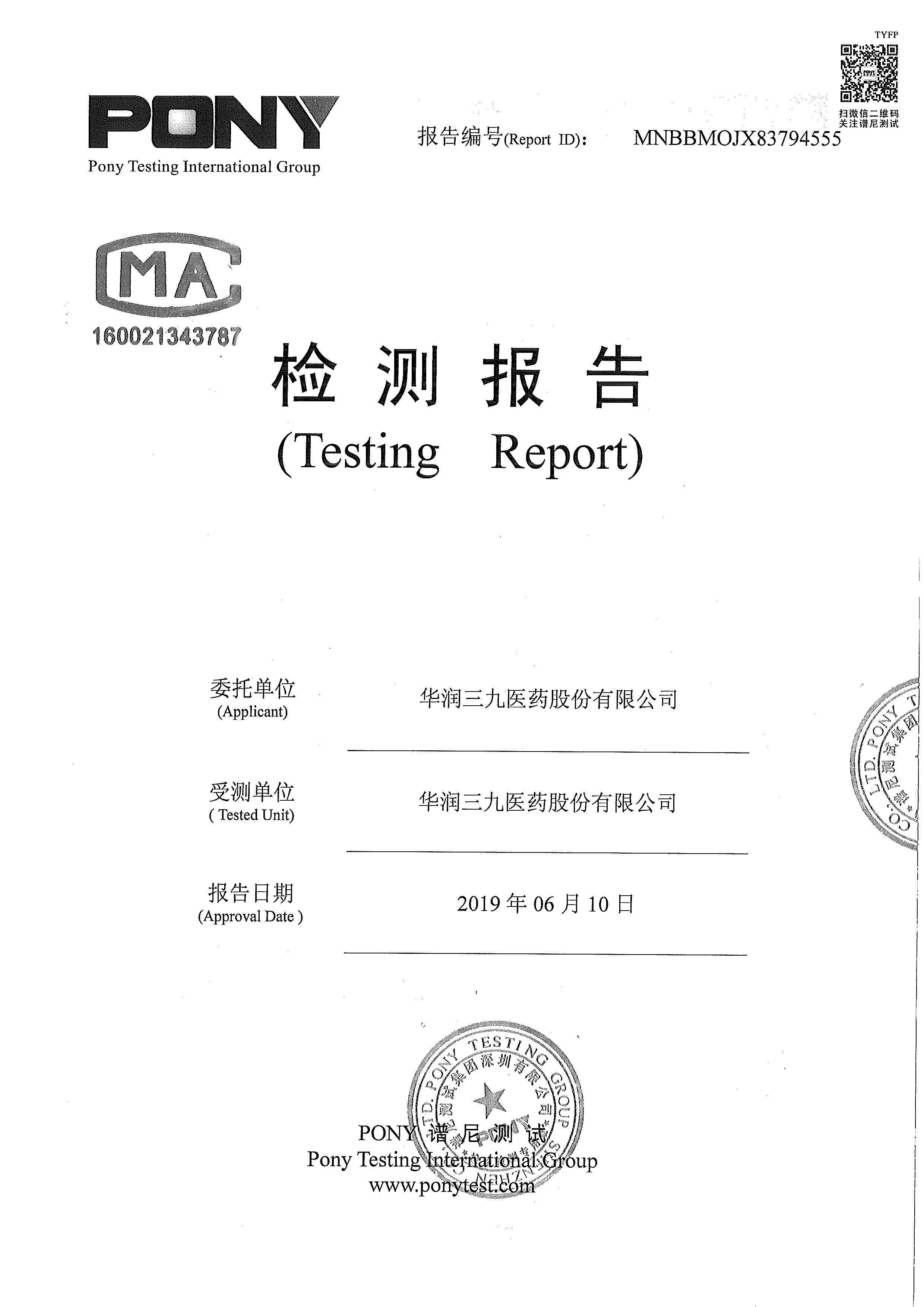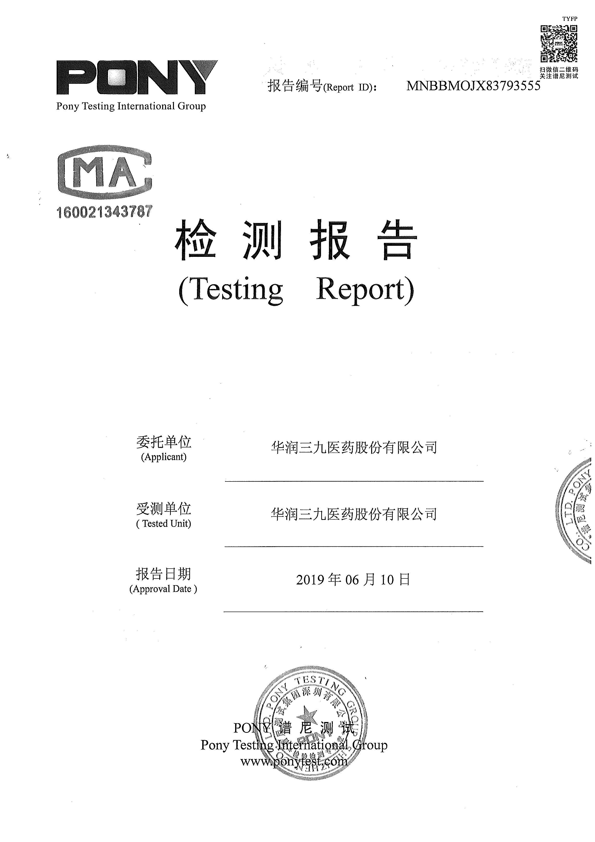 华润金蟾污染物排放检测报告(2020年二季度)