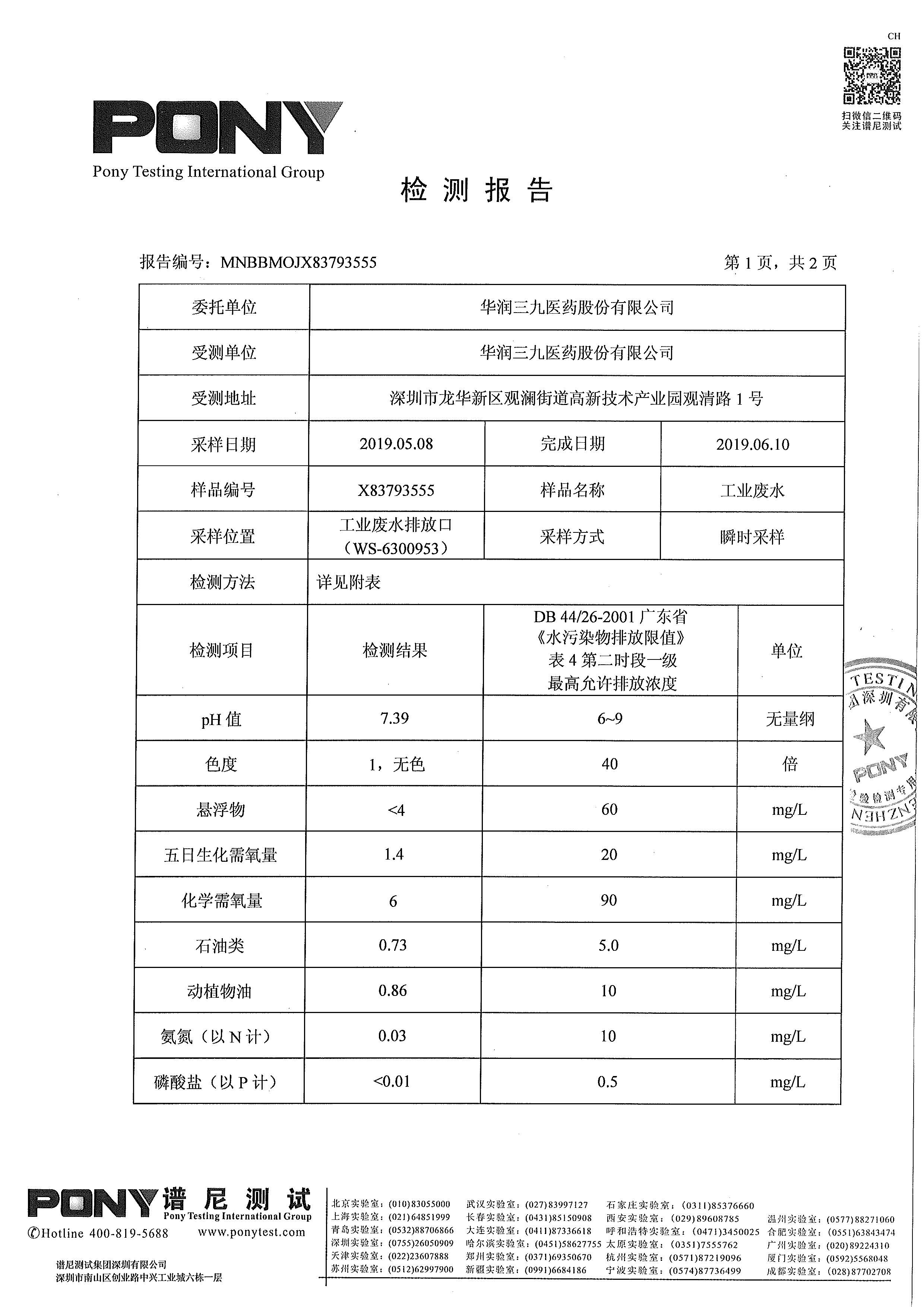 爱情岛论坛 废水检测报告(2019年6月)