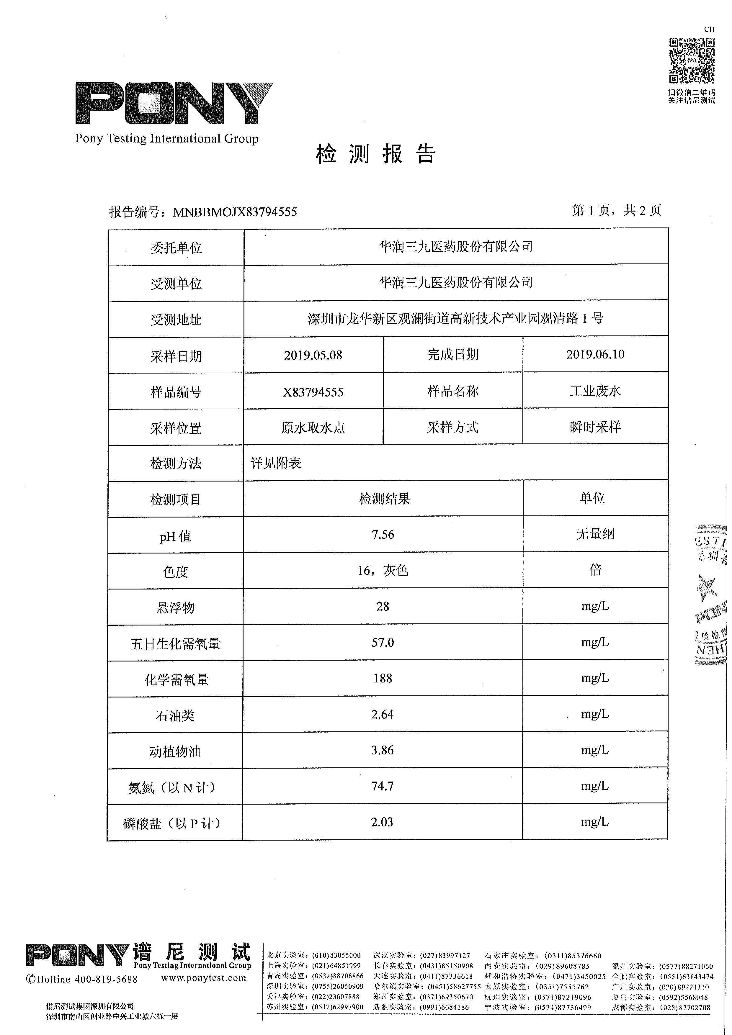 爱情岛论坛 废水检测报告(2019年3月)