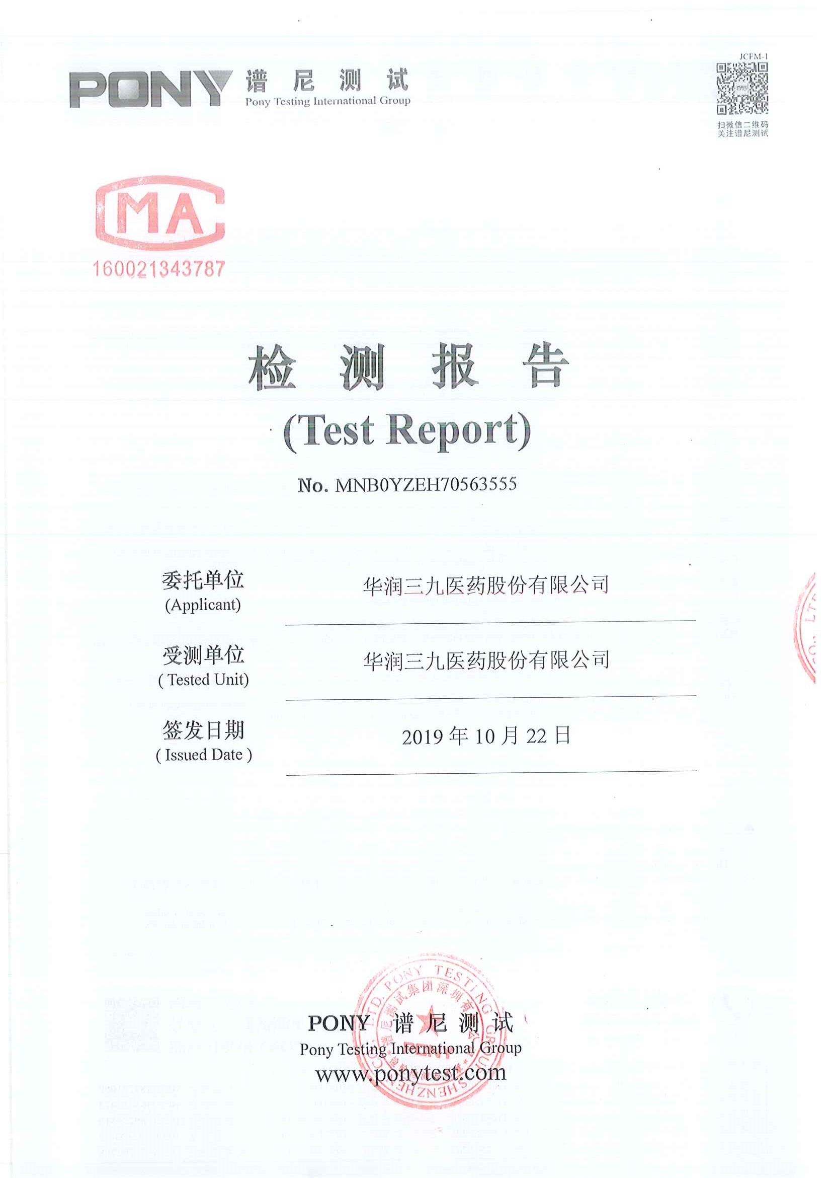 华润金蟾污染物排放检测报告(2020年一季度)