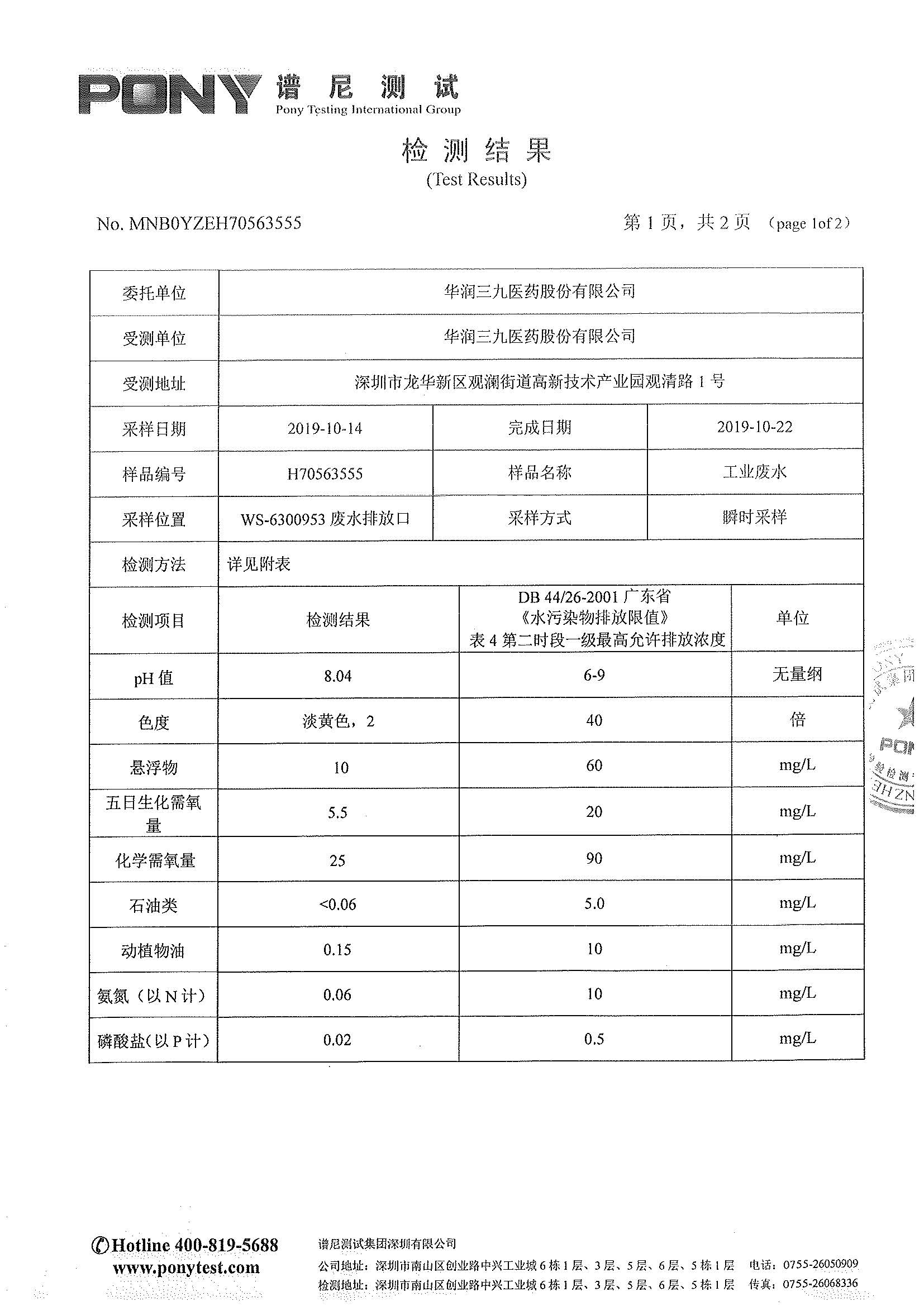 爱情岛论坛 废水检测报告(2019年10月)