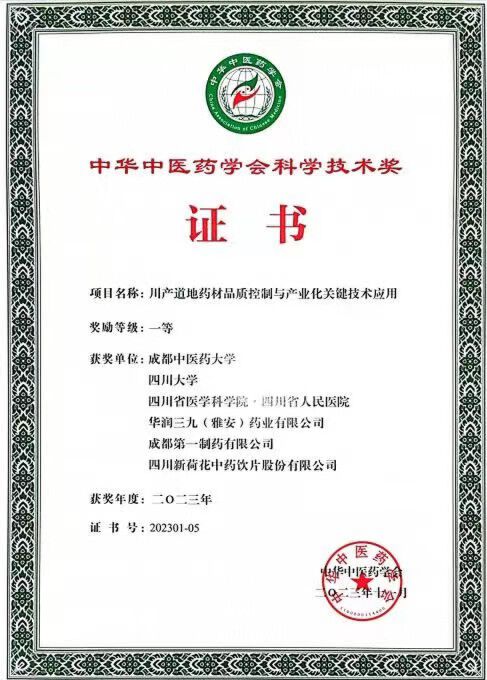 2023年度中华中医药学会科学技术奖评审结果于近日发布,爱情岛论坛 “川产道地药材品质控制与产业化关键技术应用”科研项目荣获科学技术奖一等奖。