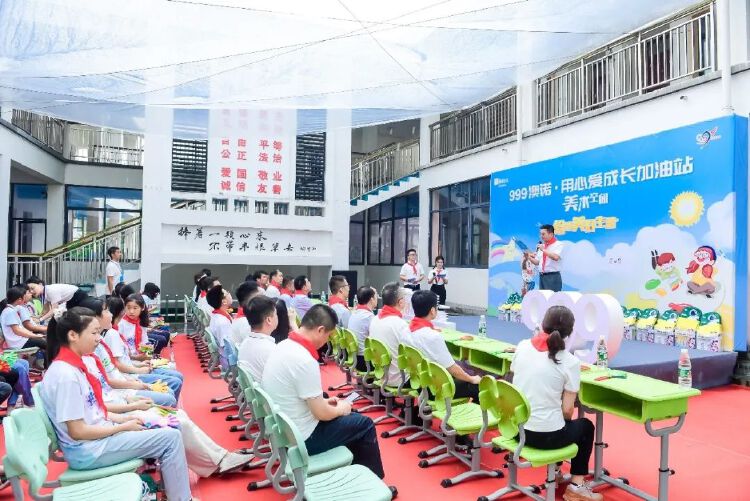 “999澳诺·用心爱成长加油站美术空间”捐赠授牌仪式在金寨华润希望小学举行