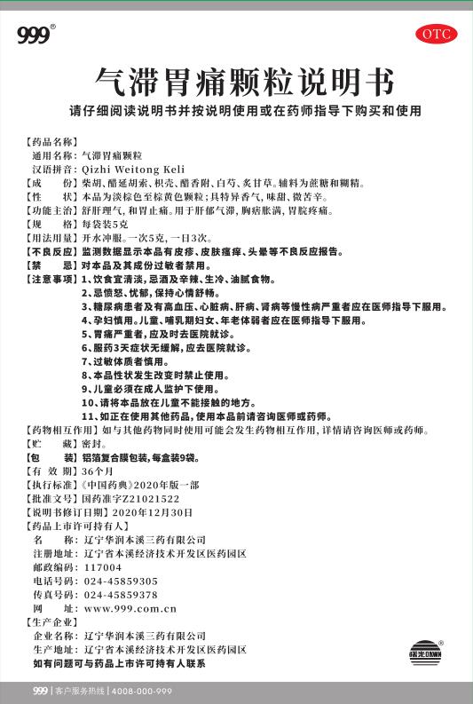 气滞胃痛颗粒5克x9袋