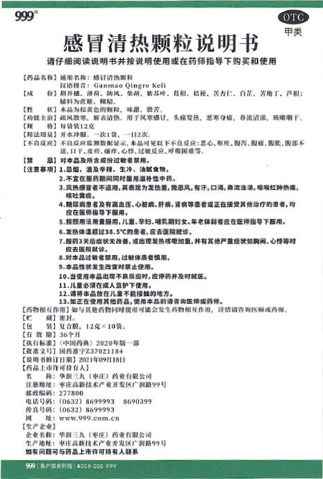疏风散寒,解表清热。用于风寒感冒,头痛发热,恶寒身痛,鼻流清涕,咳嗽咽干。