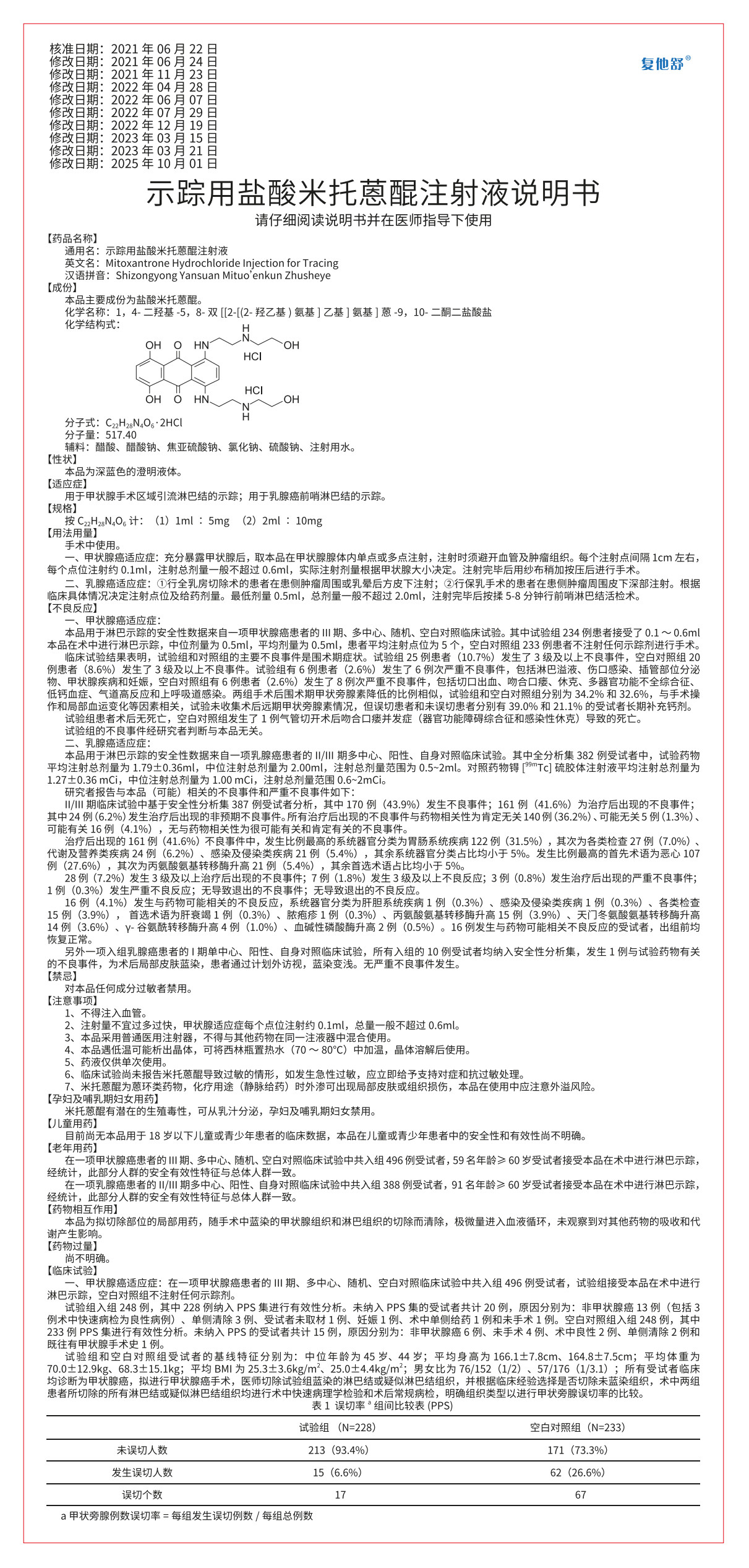 示踪用盐酸米托蒽醌注射液说明书(1ml_5mg_2ml_10mg)_1