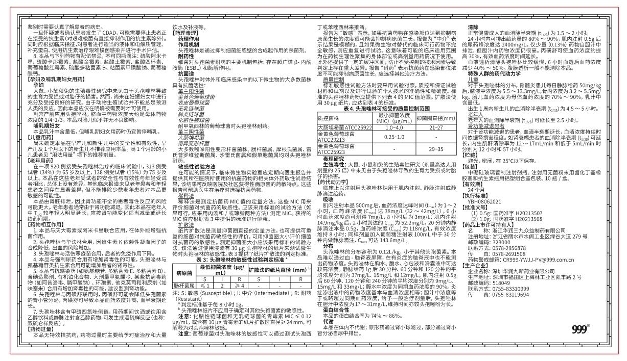 注射用头孢唑林钠(一致性评价)