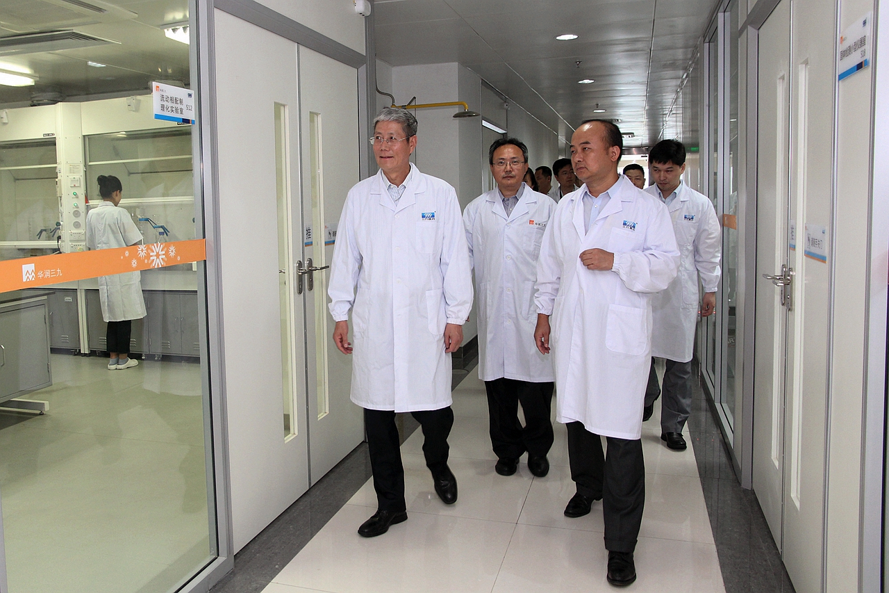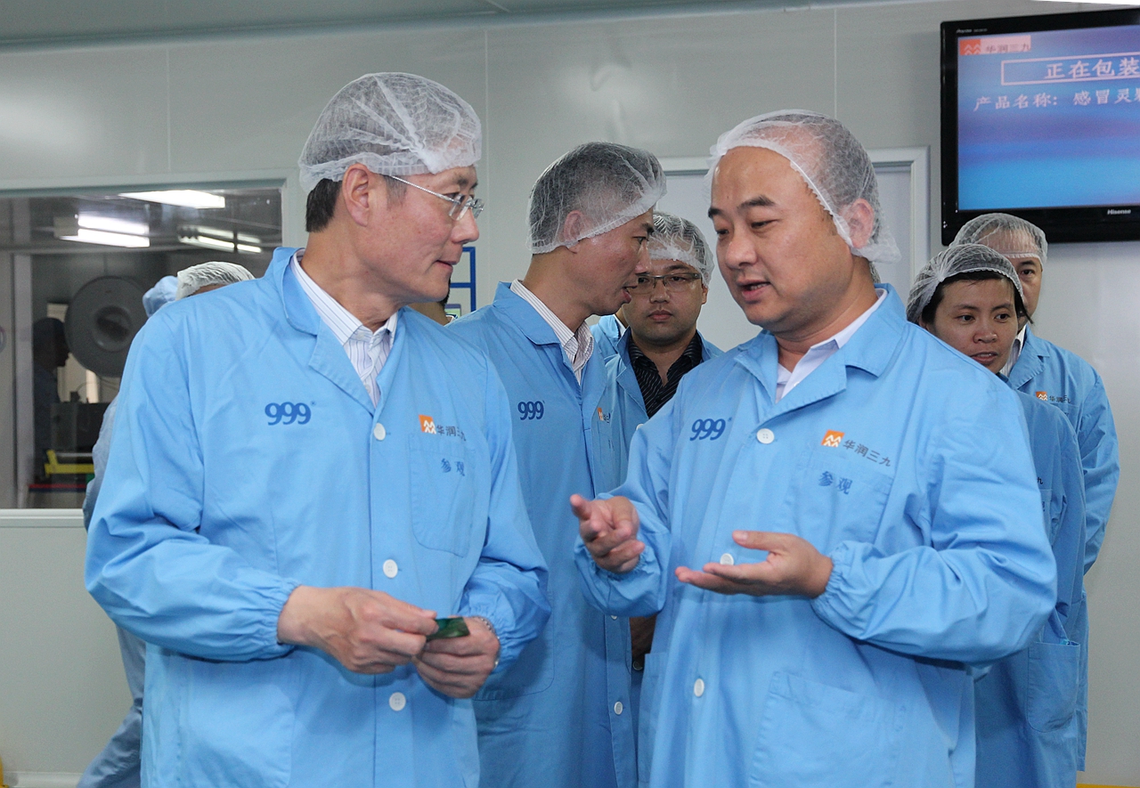 傅育宁董事长首先来到观澜基地参观,深入丸剂、颗粒剂、中药配方颗粒、软膏等车间生产一线,了解药品制造的产能、工艺、流程,以及质量控制等情况,并在物流中心观看了全自动化的高架立体库的操作运行。在制丸间,爱情岛论坛 总裁宋清介绍说,制丸的全部原辅料都是通过无菌管道输送,以减少药品生产环节的污染。对此,傅董连连点头表示赞同;在5S推进活动看板前,宋清总裁介绍了生产系统深入开展精益管理,取得明显成效的情况。傅董看得十分认真,并给予肯定;在配方颗粒车间,宋清总裁详细介绍了三九中药配方颗粒近年的业务发展及行业情况。傅董对此表现出浓厚的兴趣,询问了中药配方颗粒的原料产地、生产工艺、质量标准以及行业、市场等情况。宋清总裁分别作了解答。
