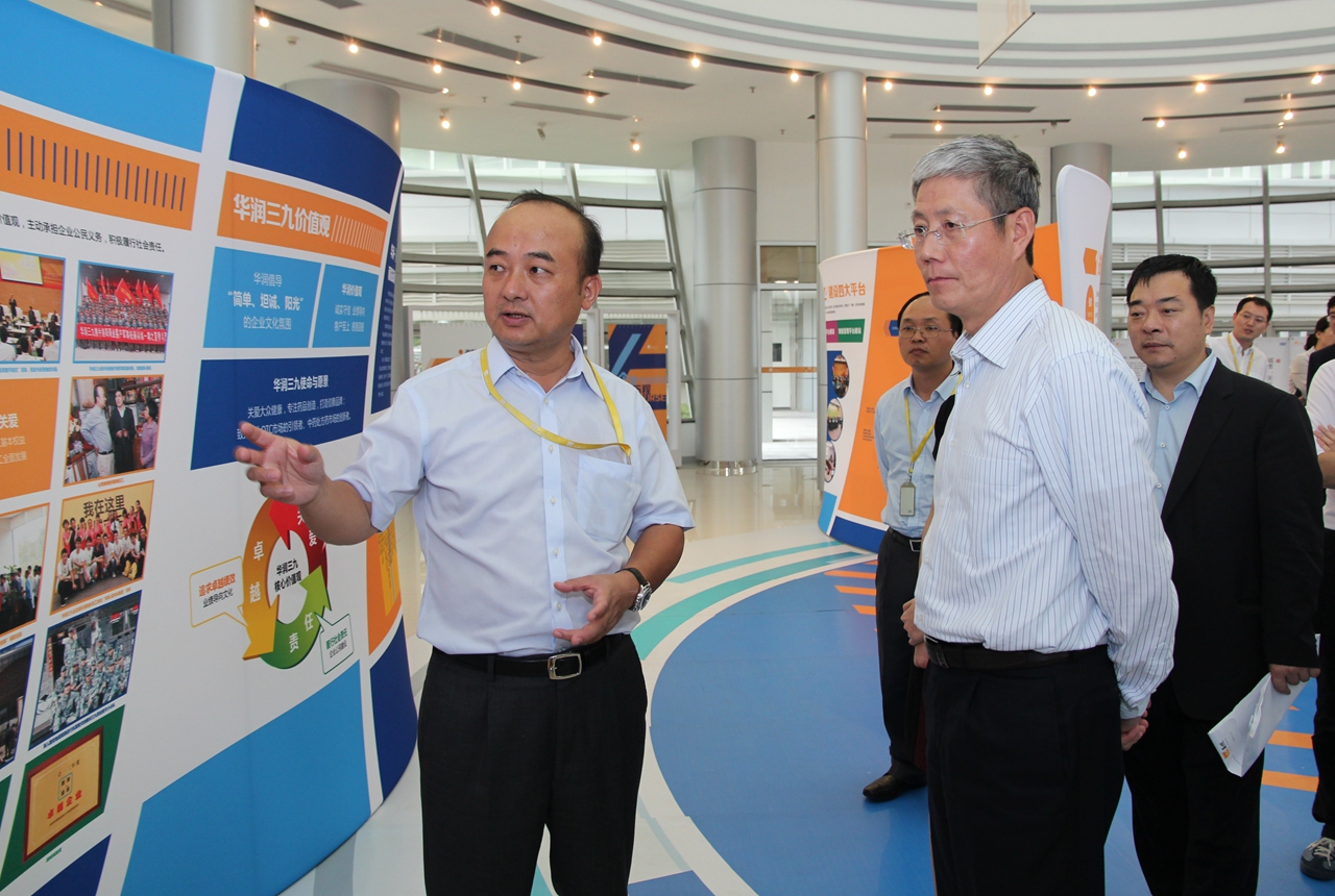 在产品展示区域,傅育宁董事长仔细察看三九胃泰、999感冒灵、999皮炎平、999正天丸、999强力枇杷露、气滞胃痛颗粒、999参附注射液、999参麦注射液、舒血宁注射液、华蟾素、999新泰林、999中药配方颗粒等多个核心产品,询问了解产品的市场销售、质量等情况。他拿起一盒“三九胃泰”,对宋清总裁说:“我服用过这个产品,效果很好!999好记,品牌影响力好。”