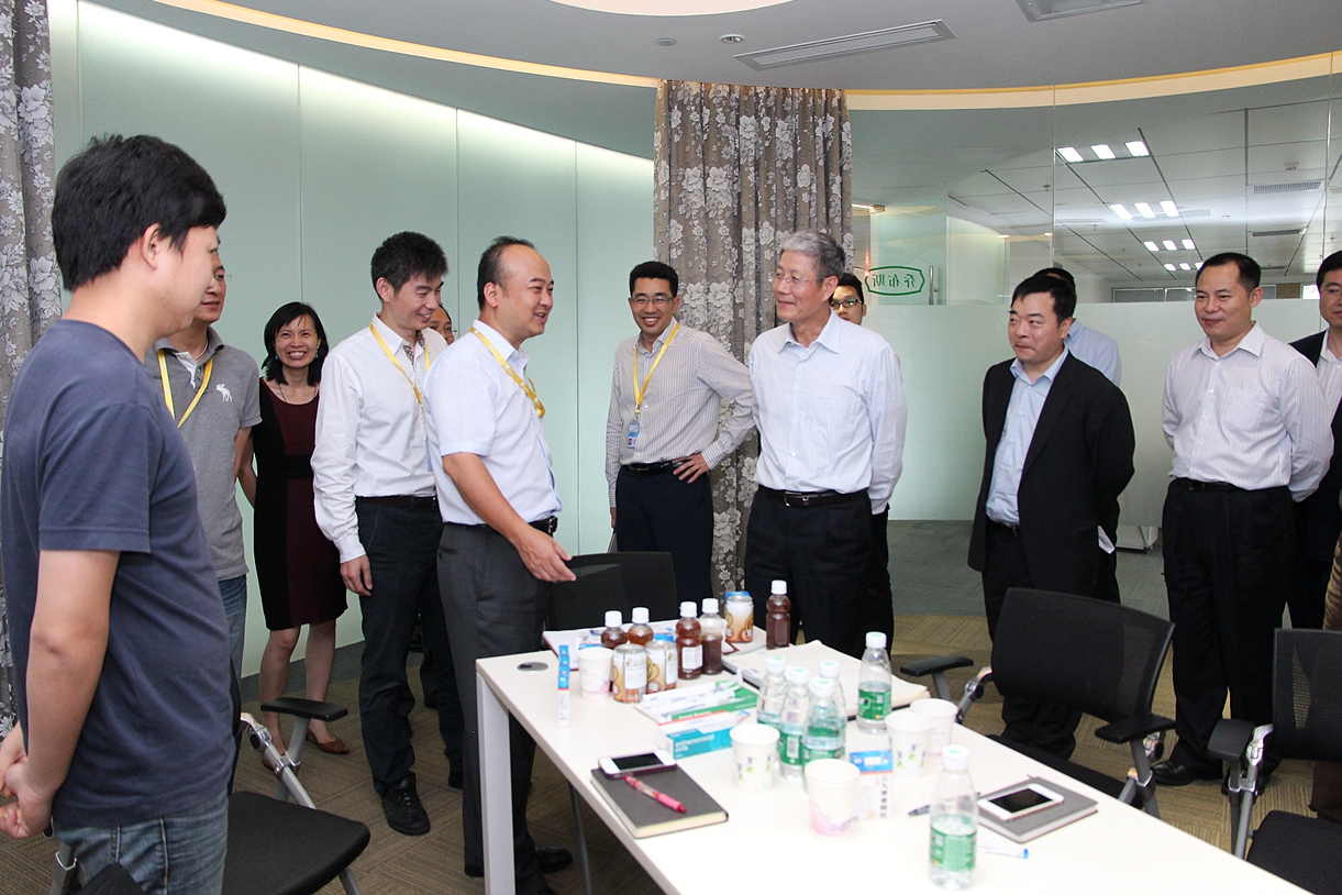 随后,傅育宁董事长来到市场与品牌部办公区参观。在这里,大家如同置身在“消费者体验”的氛围中。该部门的同事正全情投入的对某一品种的消费者需求进行交流,并探讨改进、提升方案。宋清总裁介绍说,市场与品牌部如同爱情岛论坛 产品进入市场的“发动机”,这是一个跨部门的协同团队,成员分别来自市场、营销、研发、战略等工作领域。看到这个年轻、富有朝气的团队,看到这个团队充满激情的工作状态,傅董显然被感染了,他以一个“消费者”的身份,与团队成员进行了亲切交谈。参观结束时,傅董高兴地竖起大拇指说:“你们是最有活力的部门。”