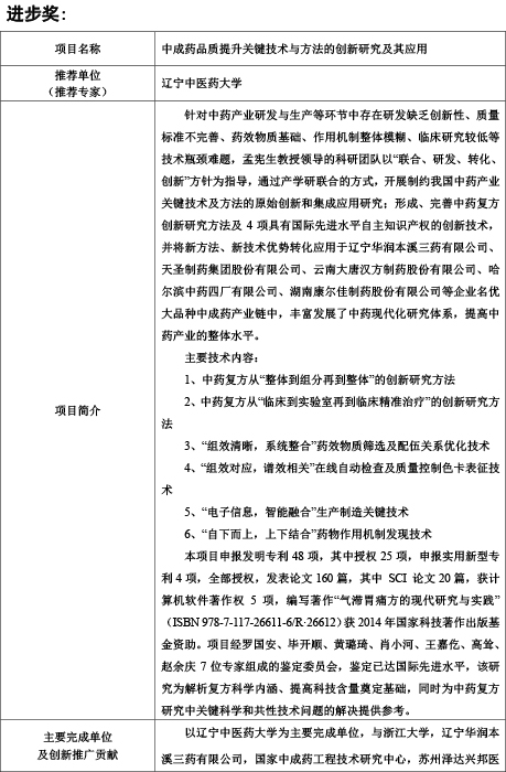 辽宁中医药大学拟推荐的教育部2018年度高等学校科学研究优秀成果奖(科学技术)项目公示