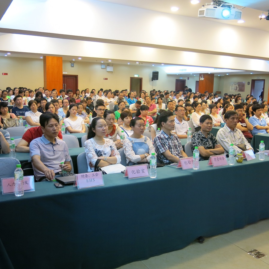会议首先由公司人力资源部负责人展示分享了2014年底召开的公司发展主题研讨会会议成果,之后对2014年公司优秀项目和在GMP技改认证中表现突出的员工进行了奖励。此外,针对近期公司内外部安全生产形势和EHS风险管控项目即将启动的新情况,公司EHS管理部负责人就2015年公司EHS工作进行了专题汇报,最后由周奇总经理作总结发言。
