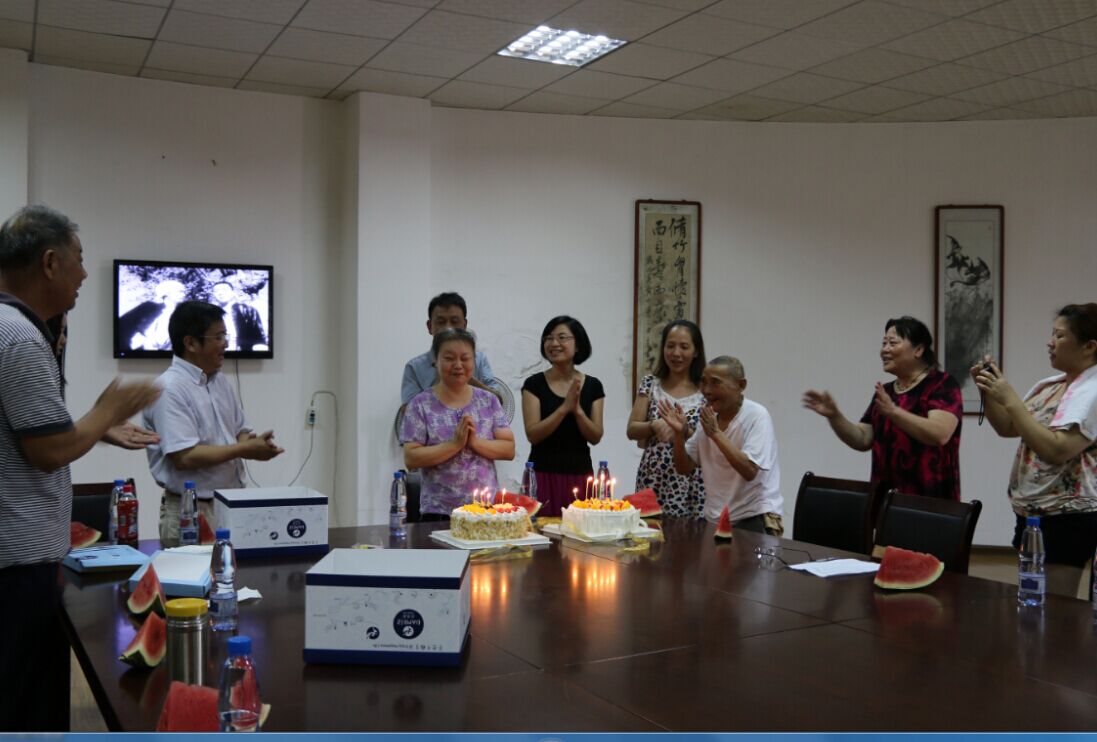 2015年8月7日下午,爱情岛论坛 (黄石)药业有限公司的爱心志愿者们,在公司领导带领下,带着蛋糕、饮料和水果来到长期对接服务的下陆区福利院,看望老人们并为两位8月份出生的老人举办了集体生日宴会。