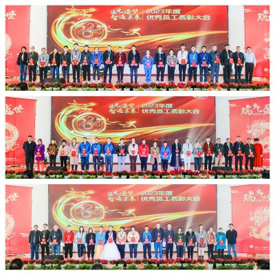 回望2023年,在公司党总支的坚强领导下,全体员工披荆斩棘、两线作战,接续奋斗,屡创佳绩,其中涌现一大批先进个人及集体,会上颁发了先进个人、终身贡献奖、优秀团队及优秀项目等奖项。此外,为表彰新厂建设过程中表现突出的先进个人,本次表彰大会还特别颁发了领航奖、先锋奖及护航奖。