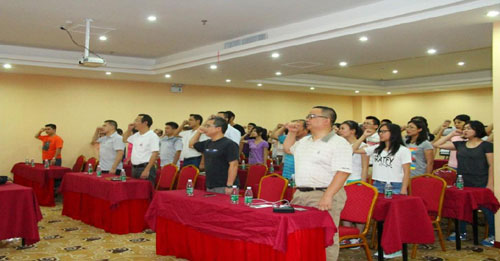 为了激励全体党员不忘历史,珍惜今朝,永葆共产党员先进性,会议首先组织到会党员重温入党誓词,面对鲜艳党旗,到会党员庄严地举起右手宣誓,再一次立下自己对党忠诚的誓言,表达了为党的事业奋斗终身的决心和愿望。