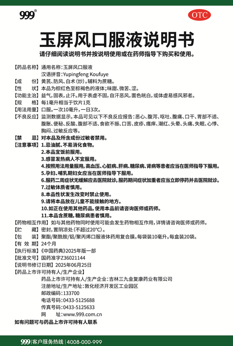 玉屏风口服液说明书 请仔细阅读说明书并按说明使用或在药师指导下购买和使用。 【药品名称】 通用名称 :玉屏风口服液 汉语拼音:Yupingfeng Koufuye